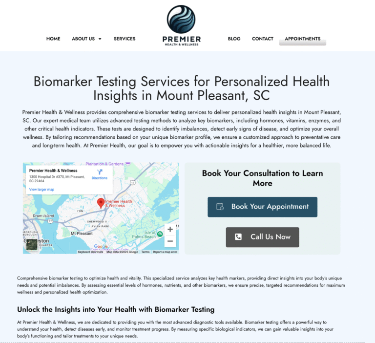Premier Health & Wellness targets affluent demographics in the Mt. Pleasant, SC and surrounding area. We custom designed the website to position the brand as a high-end premium wellness provider. We developed dynamic location / service combination pages to drive local search traffic. We leveraged directories, social media, and ads to increase visibility and brand awareness.